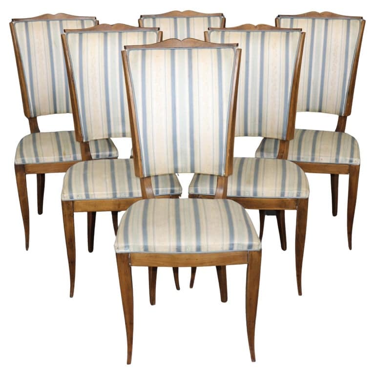 6 French Art Deco Mustache Back Dining Chairs Attributed to Jules Leleu