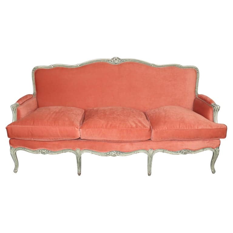 Antique French Louis XV Style Distressed Paint Decorated and Carved Sofa