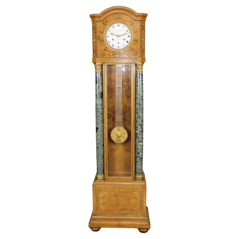 Antique French Empire Style Bronze And Marble Mounted Tall Case Clock