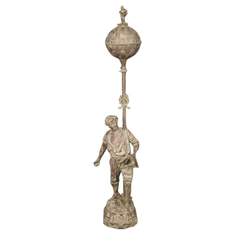 Fine Quality Agricultural Themed Figural Bronze Tall Floor Lamp Circa 1900