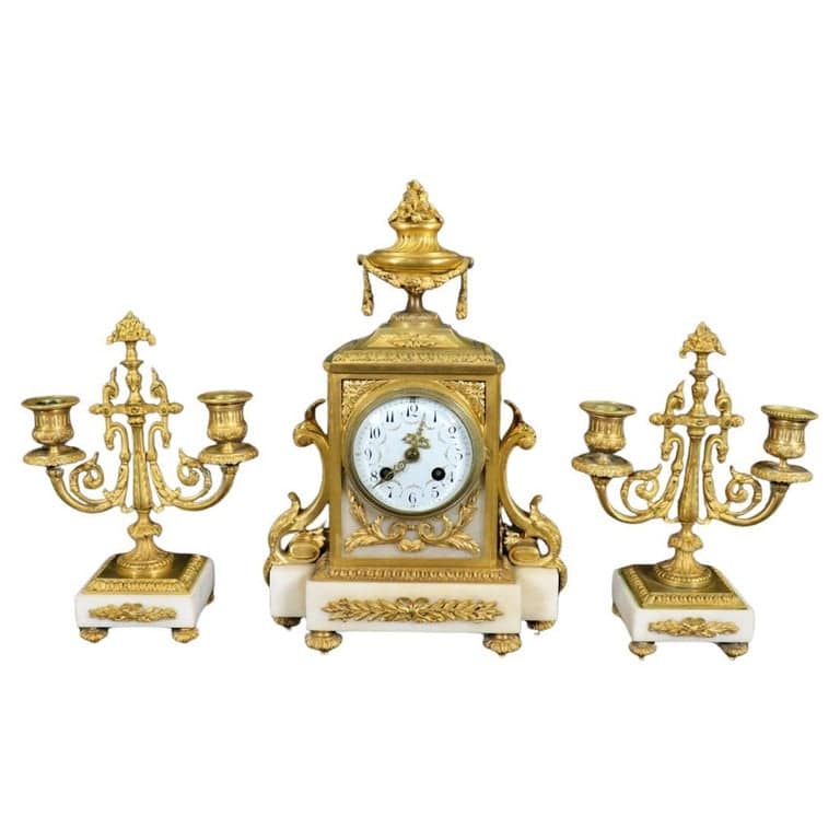 Superb Quality French Louis XV Bronze and White Marble Clock Set