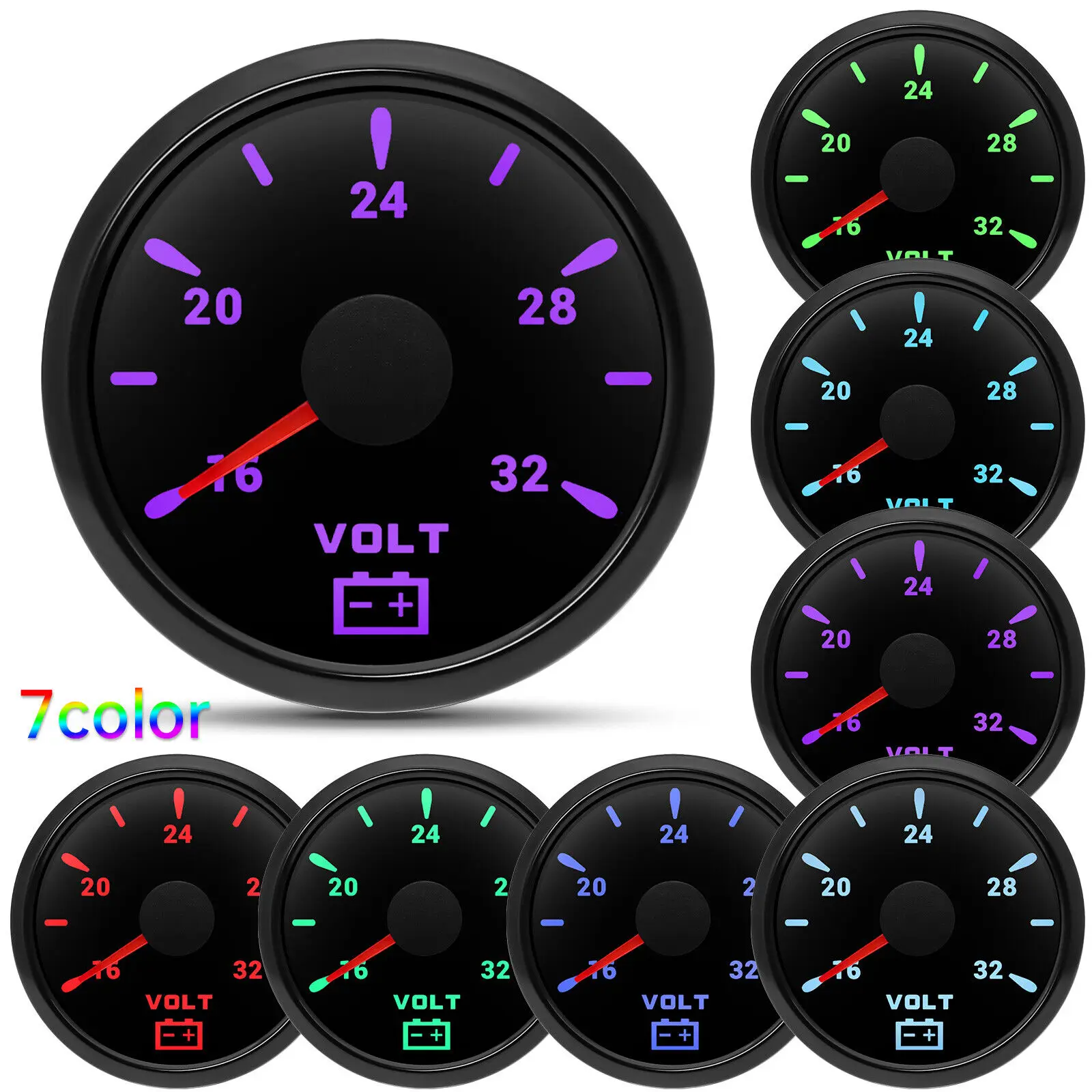 52mm Pointer Voltage Gauge 16-32V 7 Color LED for Auto Car Boat Voltmeter