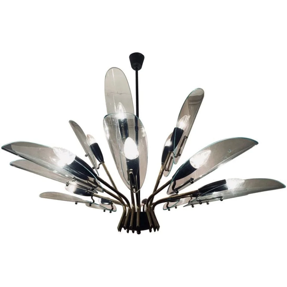 1950S ITALIAN BRASS AND GLASS LEAVES CHANDELIER