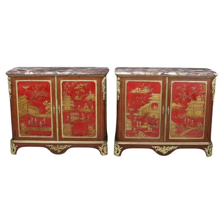Companion Pair of French Gilt Bronze Mounted De Cooene Freres Attr. Buffets