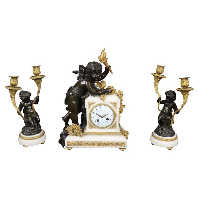 Fine Marble and Bronze fFgural Clock Candelabras by Lemerle Charpentier