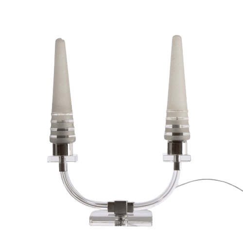 Description A sleek antique Art Deco flush mount with an unusual glass shade, dating from the 1930s. The fixture begins with an aged fitter which affixes to the unusual white glass shade below. This flush mount is in excellent condition with no cracks or breaks to the glass, just the expected fleabites around the edge. It has been professionally rewired and come with all necessary attachments for modern installation. The light measures 8” wide by 11-3/4″ tall.